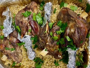 Roasted Lamb Thigh Served W/ Vermicelli & Nuts $240